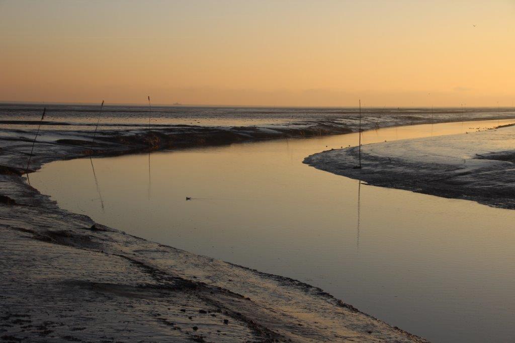 Nach ein paar Minuten auf dem Deich erreichen Sie weitläufige Strandgebiete, die lediglich von Unermüdlichen wie Ihnen spärlich bevölkert werden. Quasi an der Ecke des Jadebusens gelegen bietet sich Ihnen der weite Blick auf die Nordsee mit Ihrer niedersächsischen Inselkette, die dem Wattenmeer vorgelagert ist. Und die eine oder andere Möglichkeit sich aufzuwärmen bietet sich auch während des Winterurlaubs, wenn Sie den Rückweg über Land wählen.