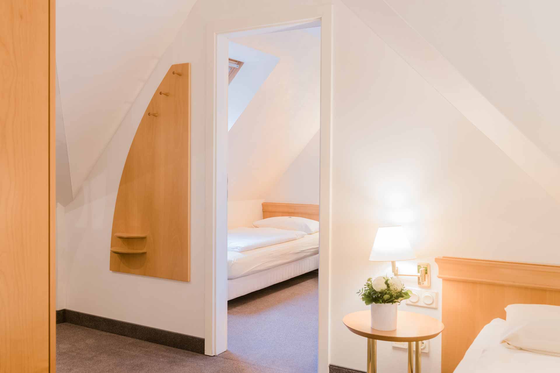 Unsere Zimmer, Familienstudios und Suiten sind modern und komfortabel eingerichtet. Zeitlose Eleganz aus natürlich verarbeiteten Holz.