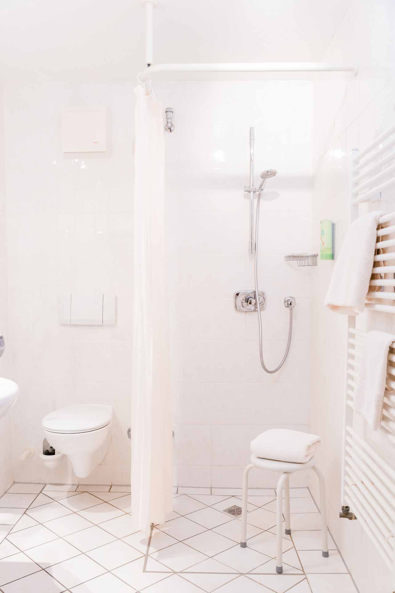 Kosmetikspiegel, Haarfön, Handwaschseife, Shampoo und Körperwaschlotion, ausreichend Handtücher, genügend Ablageflächen und eine ebenerdige Dusche, Toilette, z.T. rollstuhlfreundlich